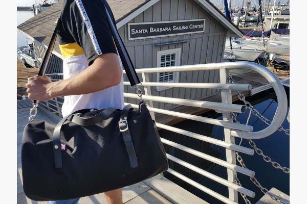 Canvas is usually made from cotton and sometimes linen. It differs from other heavy cotton fabrics, such as denim, in being plain weave rather than twill weave. canvas holdall with leather trim Canvas comes in two basic types: plain and duck. The threads in duck canvas are more tightly woven. Canvas is made in a range of weights (oz per sq yd) and we would normally use a plain 12oz canvas to make a lightweight item and an 18oz (or possibly even a 24oz) for a strong holdall or backpack. Traditionally, the canvas fabric would be waterproofed by applying coats of wax but for most modern applications it is impregnated with flurocarbon to give a clean, non-waxy finish.